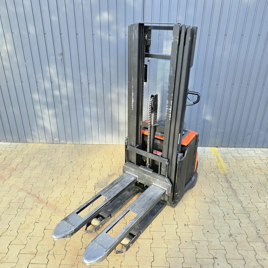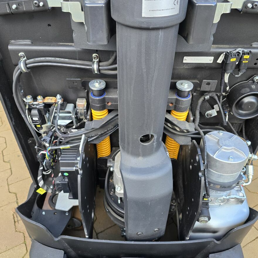 Bezpieczeństwo pracy podnosi cała gama rozwiązań wbudowanych w konstrukcję: elektromagnetyczne hamulce, automatyczna blokada jazdy przy podniesionych widłach, ochrona przed przeciążeniem, wskaźnik poziomu baterii, licznik motogodzin oraz nowoczesny monitoring pracy. Kwasowa bateria 24V zapewnia długi czas pracy nawet podczas intensywnego użytkowania – idealne rozwiązanie dla firm pracujących w systemie wielozmianowym.